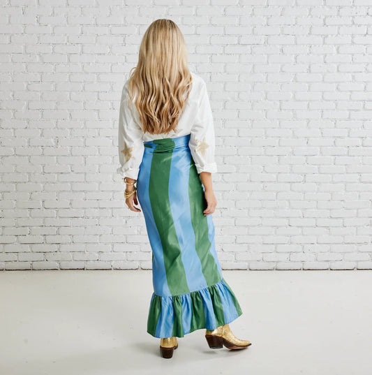 Whitney Wrap Green and Blue Stripe skirt