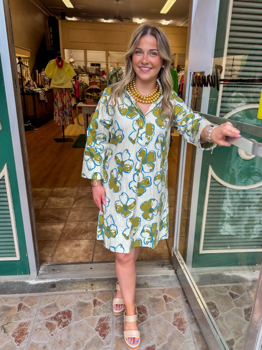Chatham Dress Yellow Blue Floral dizzy lizzie