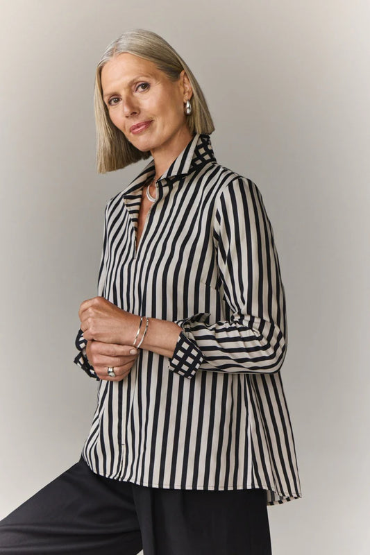 foxcroft /SILVER BIR/XS - AGNES LS GING STRP top