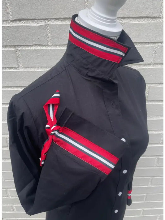 Barbara Ann Poplin Ribbon Trim top 3/4 Sleeve - Red Red