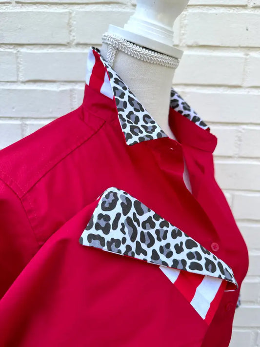 Elizabeth 3/4 Sleeve - Red W Cheetah & Red Stripe top