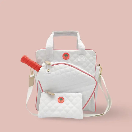 Pickleball Tote Bag Genuine Leather Accents Peach Color Trim